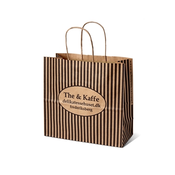 Den trendy og prisrigtige papirbærepose med tvistet hank. Automatisk produceret med pænt finish. Mange størrelser og miljøvenlige papirkvaliteter